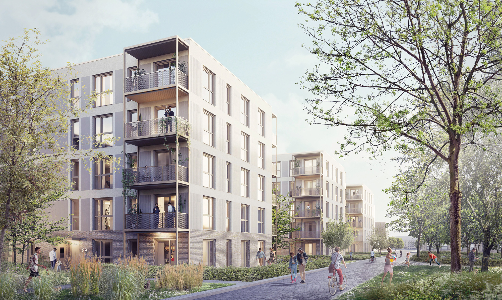Diese werden nach KFW Effizienzhaus 40 QNG-Standard geplant und errichtet. Hier entstehen 1-bis 4- Zimmerwohnungen mit Größen von 30 bis 99 m² für Studenten, Singles, Senioren, junge Paare und Familien. Den Mietern stehen Parkplätze in der objekteigenen Tiefgarage zur Verfügung, von denen alle mit E-Ladestationen vorgerüstet sind.